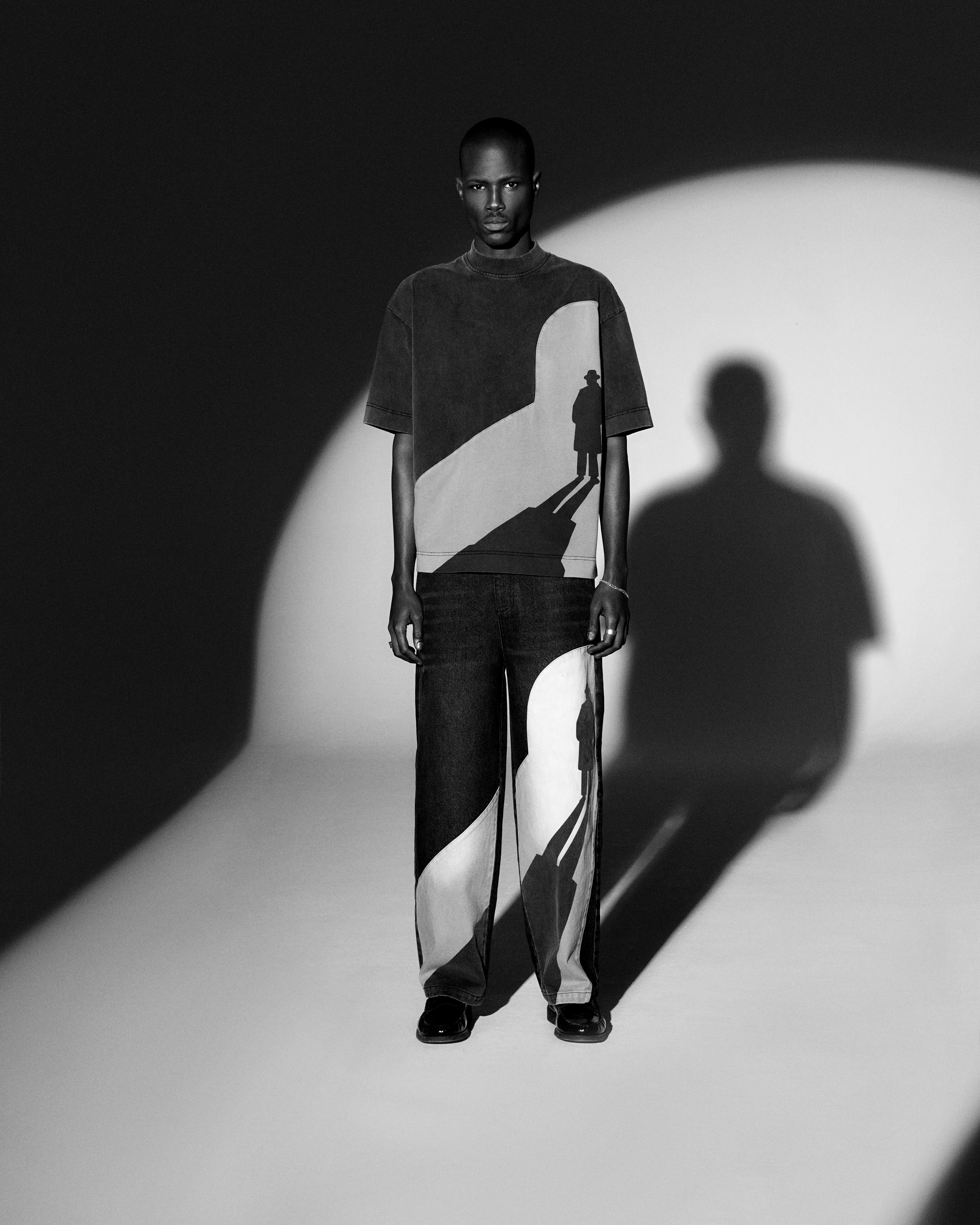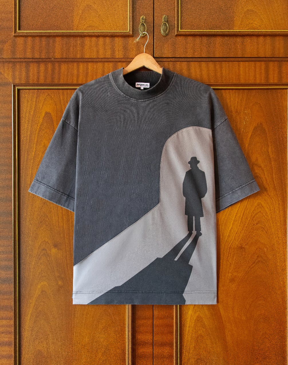 サードマンのシルエットモチーフのアップリケパネル(スクリーンプリント入り)