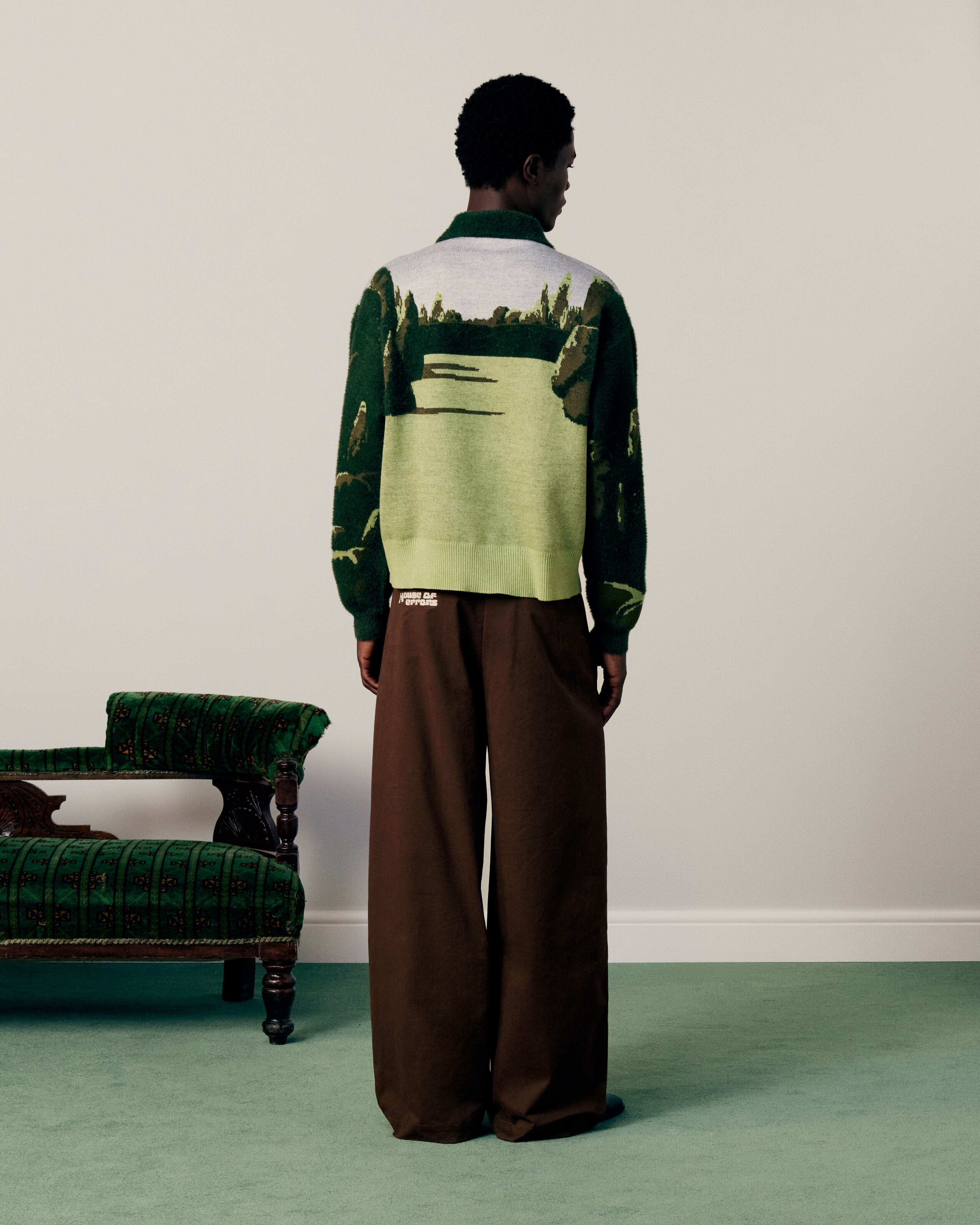 全体に「All-Seeing Garden」グラフィックをあしらった、リラックスフィットのニットセーター